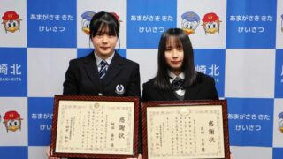 ニュー速+【兵庫】午後8時半、公園で座り込む小6男児「門限過ぎ、怒られるから帰れない…」 送り届けた女子高生2人に感謝状 尼崎