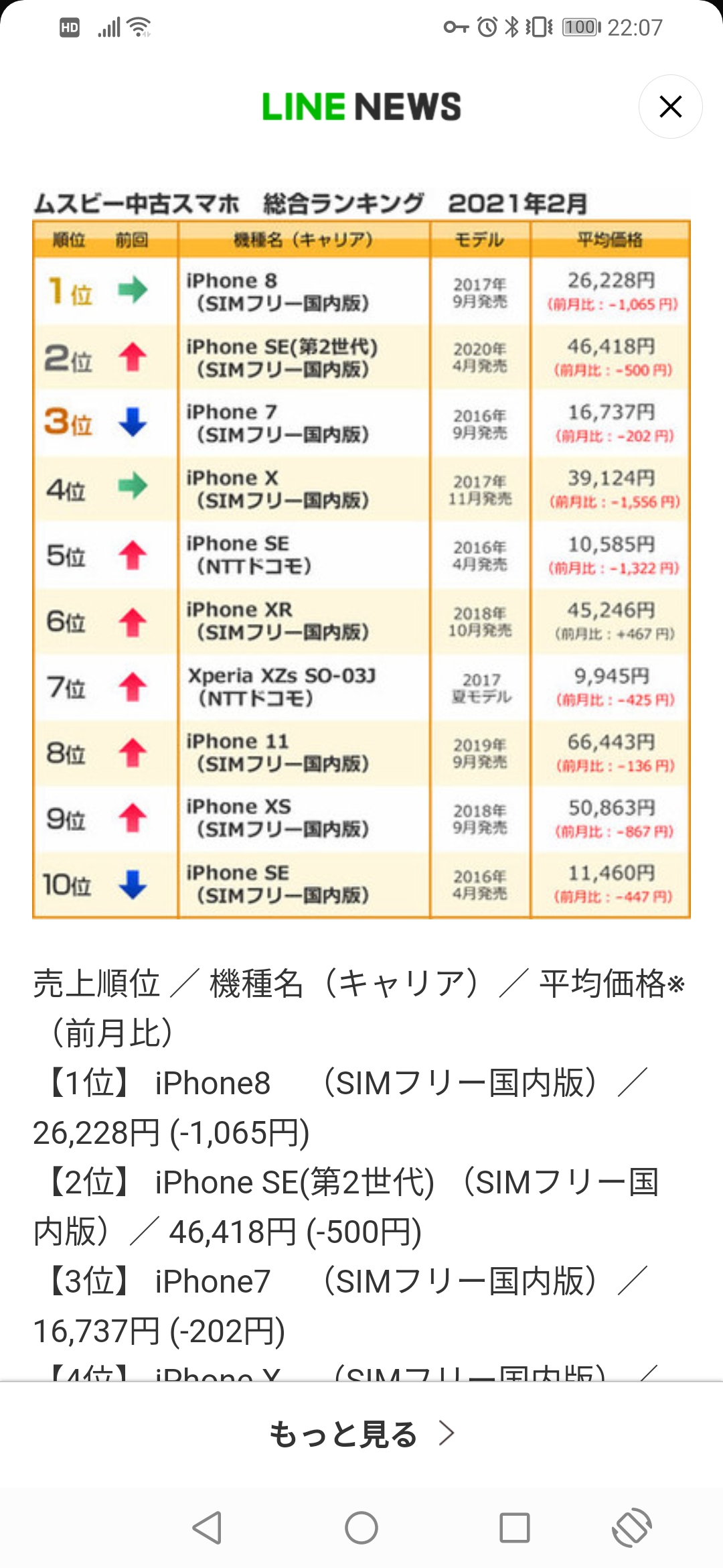 2021年2月スマホ売上ランキング 1位iPhone8、3位iPhone7、5位iPhoneSE(初代) 終わりだよこの国