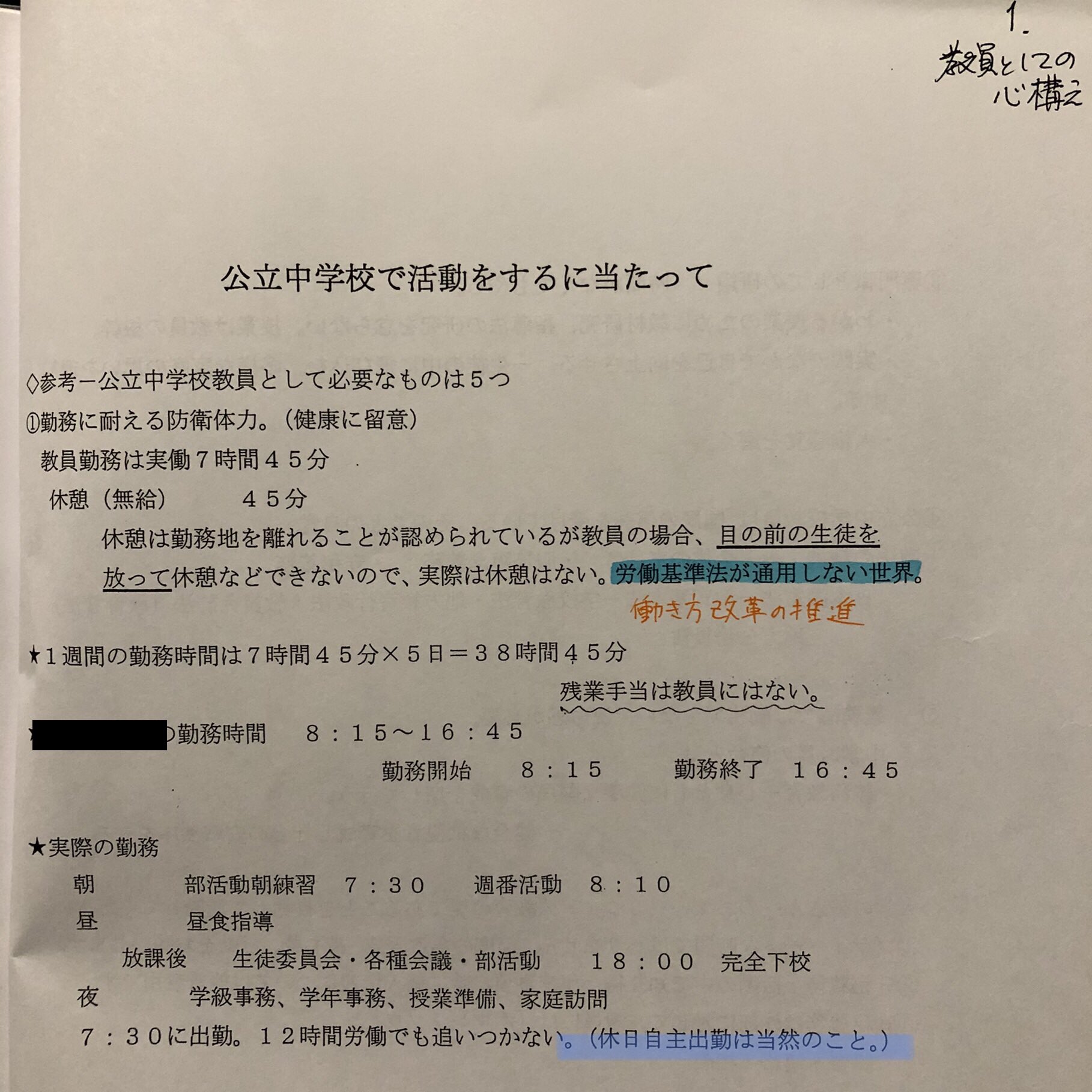 公立中学校さん、堂々と労基を破るとんでもない文書を配布