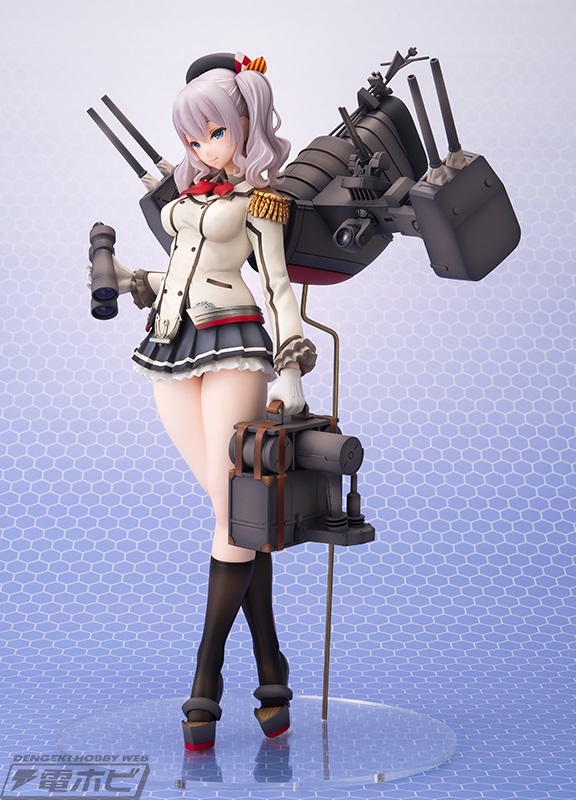 香取型 練習巡洋艦二番艦「鹿島」が1/7スケールフィギュアとなってAMAKUNIより登場。おなじみのオフィシャルイラストをモチーフに、微笑みを浮かべた可憐な表情、エレガントな礼装に包まれた魅惑のボディラインを立体化。14cm連装砲を搭載したボリューム満点の艤装は、砲台の回転と砲身の上下可動が可能なほか、探照灯にも可動域が設けられています。