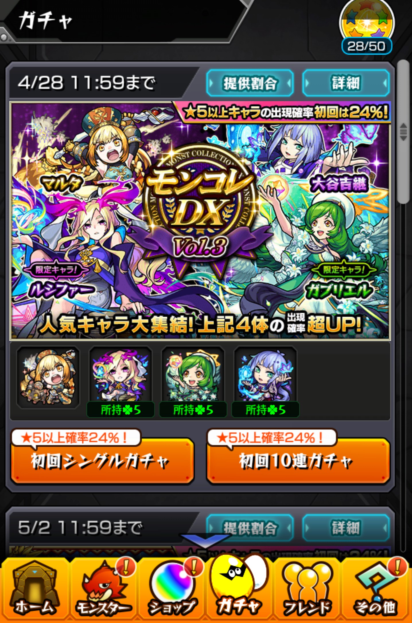 ちなみに今後のガチャ予定は各ガチャの24%シングルと超獣心祭の10連で終わり