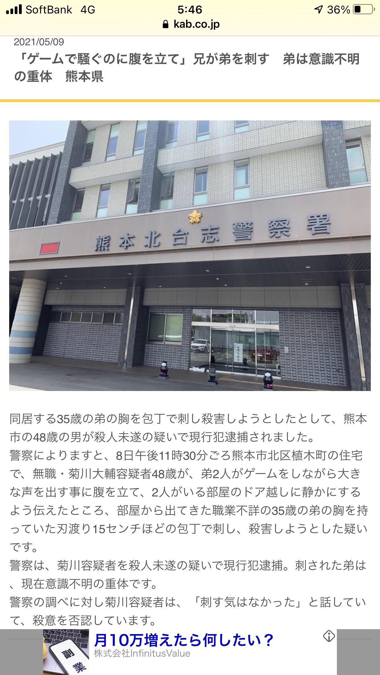 持っていた刃渡り15センチほどの包丁で刺し、殺害しようとした疑いです。- 2 : 2021/05/10(月) 05:47:52.39 ID:9YO+1pIe0