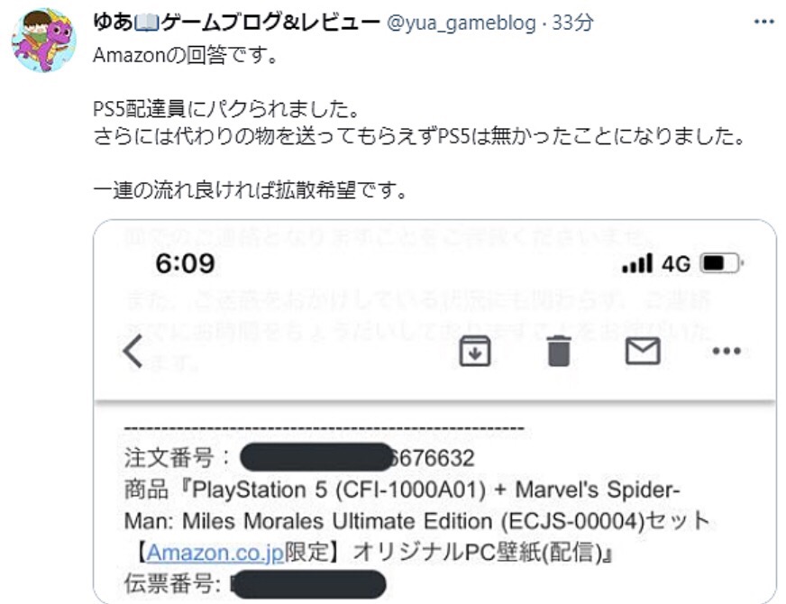 PSパクった配達員は手違いで置き配したのを誰かに盗られたって筋書で何とかなると思ったんだろうな