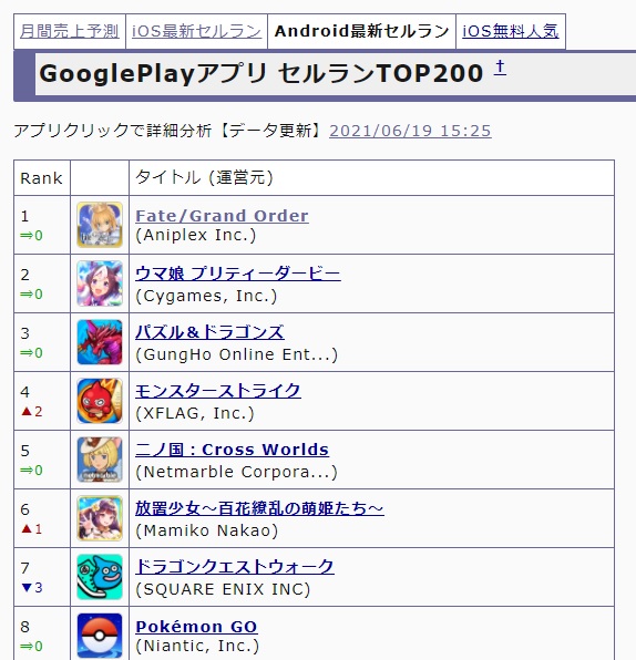 だからセルランキング見る度にパズドラの化け物さに怖気るんだって
