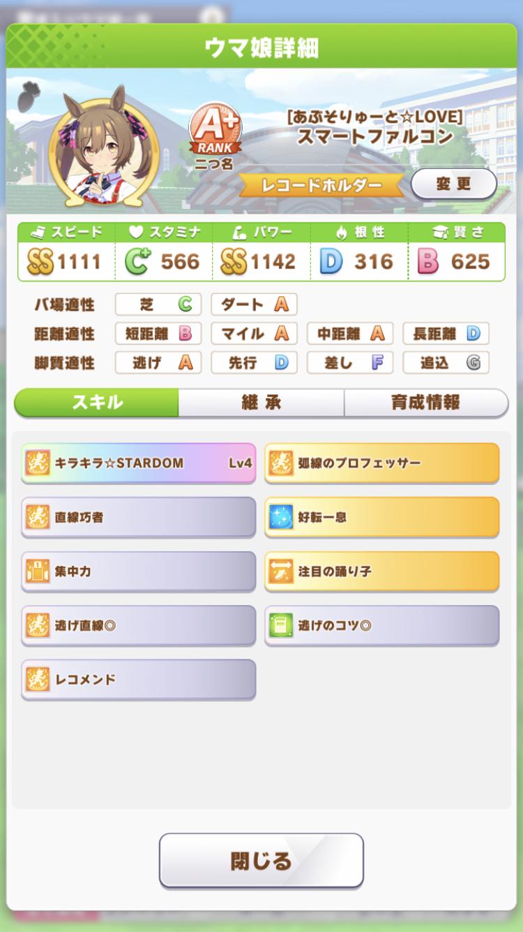 このスキル量なら20回以上はレース出てるだろうしなあ