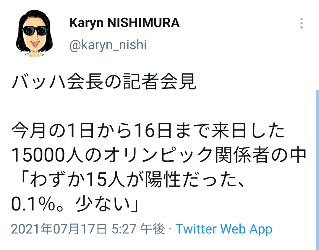 バッハ「15000人来日してたった15人しか陽性者おらんわけやろ😤少なww」記者会見にて