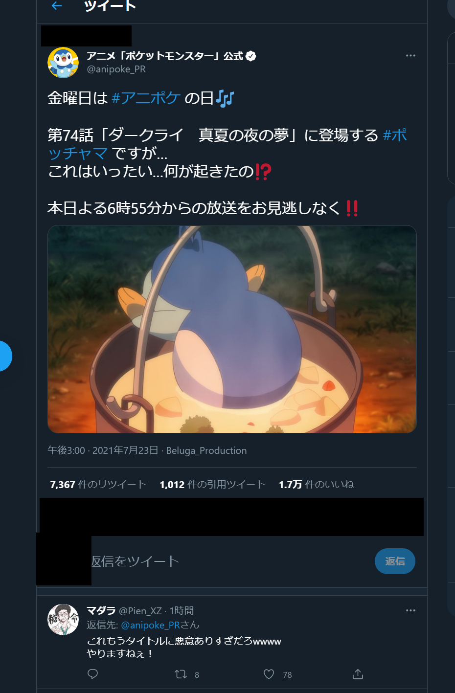 今日のポケットモンスター「ダークライ 真夏の夜の夢」