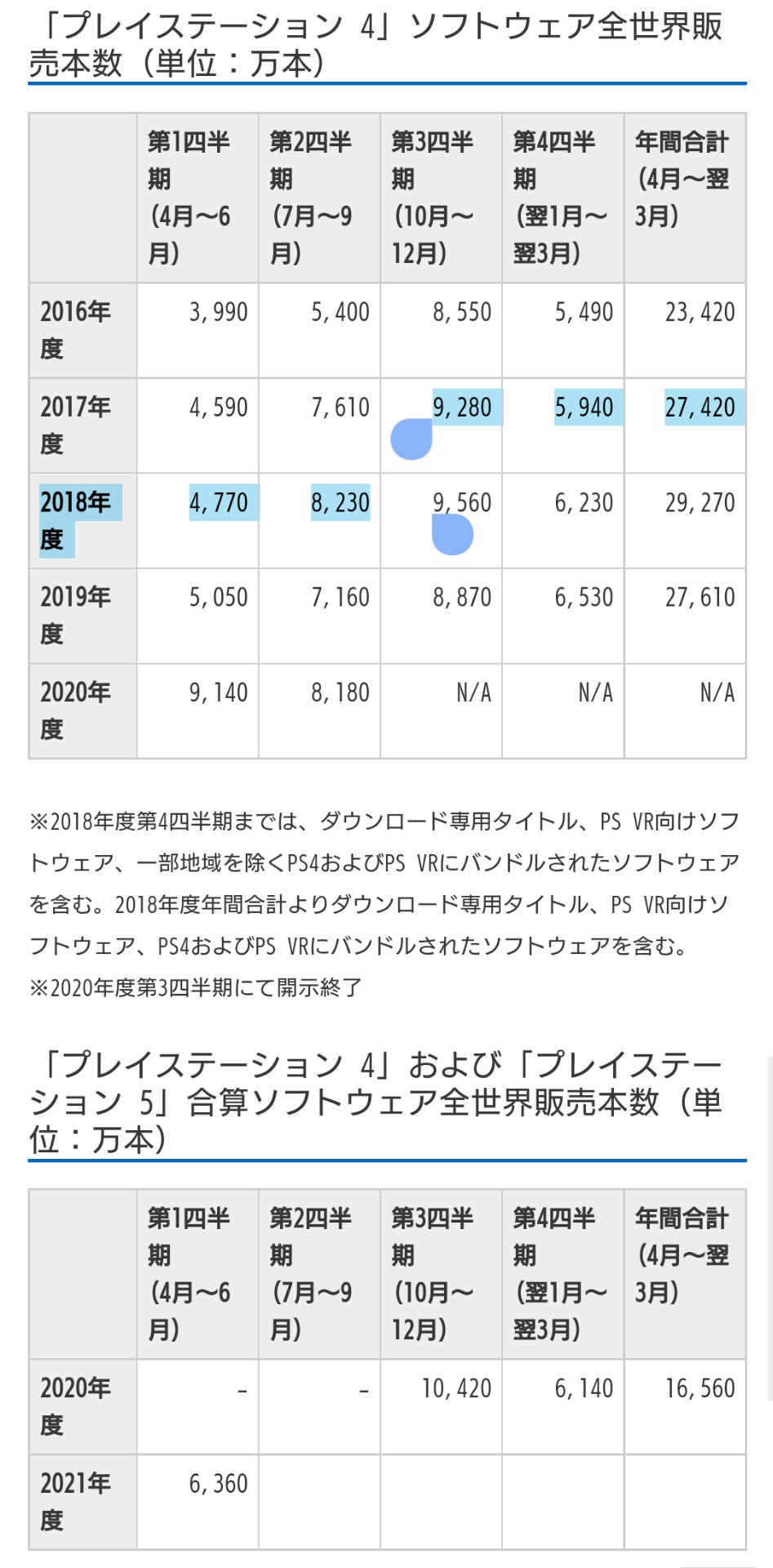 比較:PlayStation4(プレイステーション4)の5年目の販売数