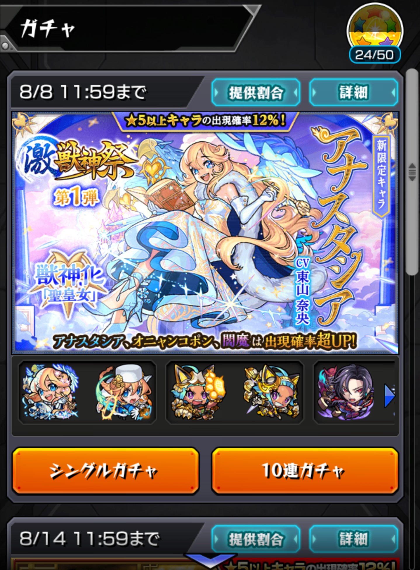 - 当たりは昨日正午にガチャ終わったアナスタシアだこらな