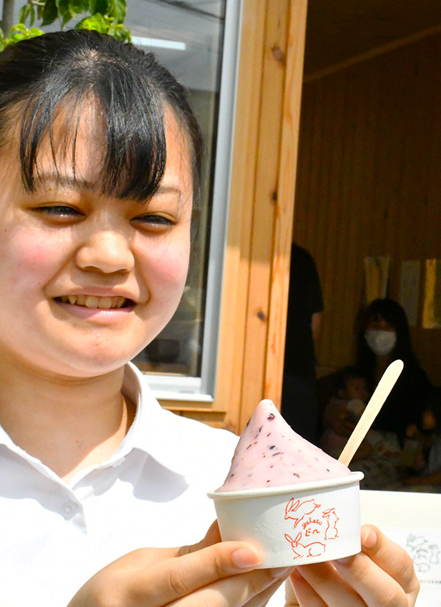 野性味あふれるブルーベリー・優しく甘いモモ」をテーマに、市内宮内のジェラート専門店「gelato En(ジェラート えん)」と共同開発した。