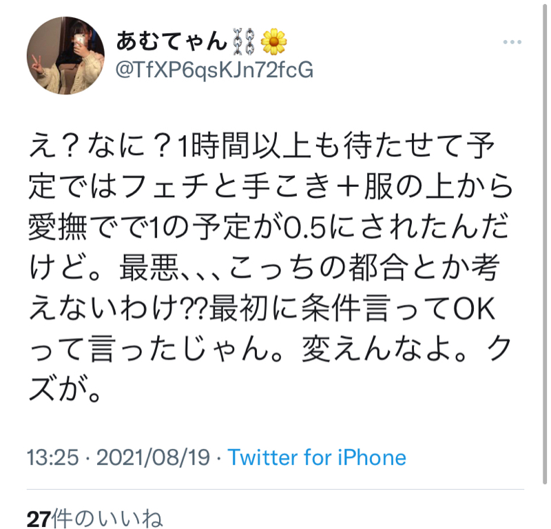 JC2「吐き気がする。 太もも舐められた。クンニされた。指入れられた。ディープキスさせられた。」