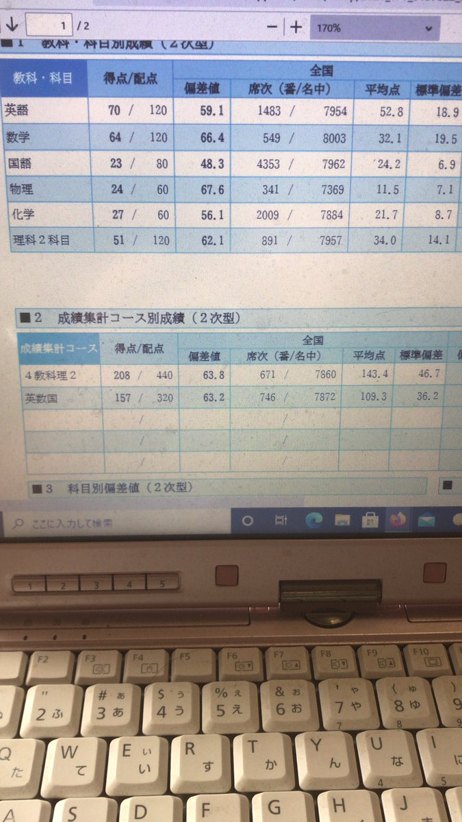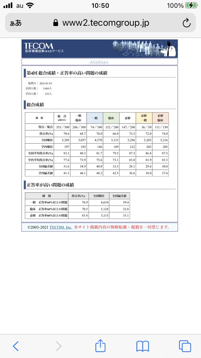 全盛期からするとカスだが、それでも国試では出ない偏差値だね。