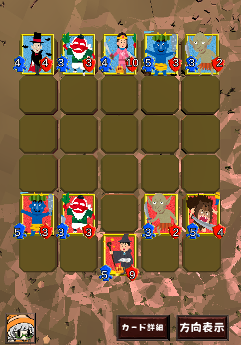 交互にカードを動かしていって王冠ついてるカードを倒したら勝ち