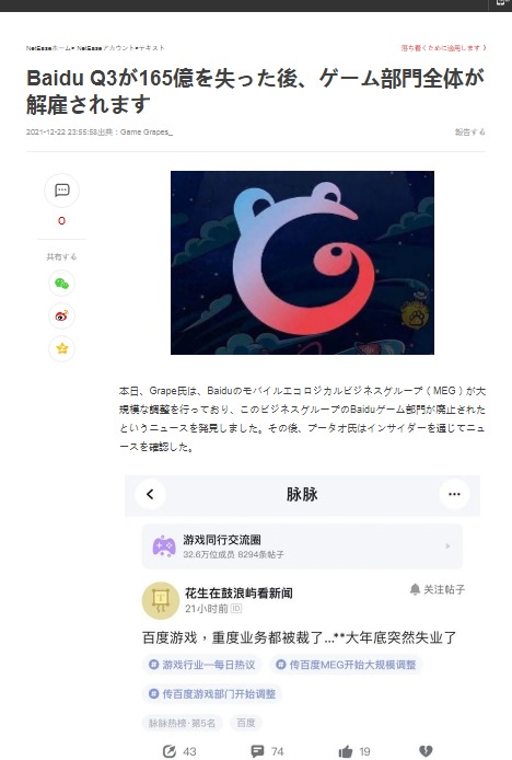 中国大手の百度(baidu)、165億の損失を出した後にゲーム事業から撤退