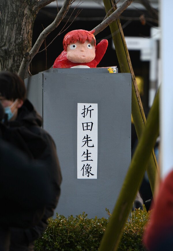 国公立大2次試験が始まった25日、京都大吉田南構内(京都市左京区)で、恒例の「折田先生像」が登場した。今年は宮崎駿監督のアニメ映画「崖の上のポニョ」のキャラクターになり、愛らしい姿で受験生にエールを送った。