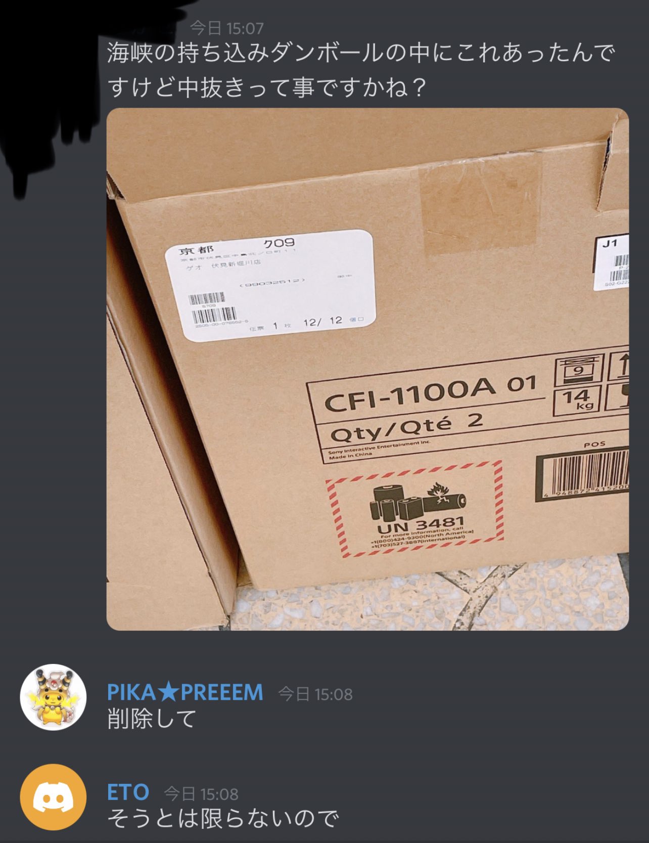 - 前もビックかどっかでやらかして配送箱は開封後即処分のお達し出たはずなのに