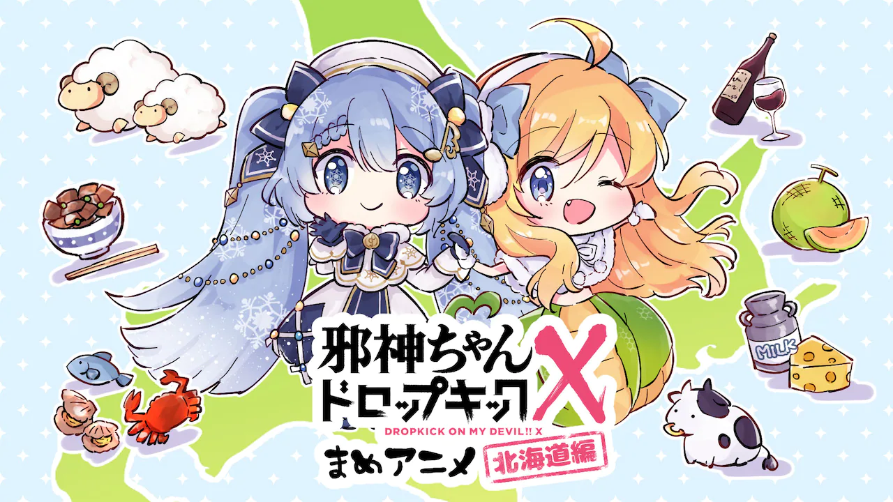 また本編の放送に先がけて、4月6日より北海道文化放送で「邪神ちゃんドロップキックX まめアニメ(北海道編)」をオンエア。映像内では北海道のさまざまな場所を邪神ちゃんたちが訪れ、北海道に詳しい初音ミクも登場する。この「まめアニメ(北海道編)」は北海道の魅力を紹介するメディア・Domingoとも連携しており、視聴者は映像で紹介された自治体のさらなる魅力を知ることもできる。