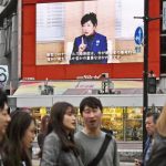 東京・渋谷のスクランブル交差点前の大型モニターに流れる、