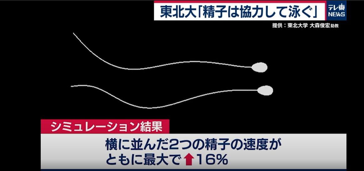 その結果、横に並んだ2つの精子の速度は、ともに最大で16%向上することがわかった。- 2 : 2022/06/03(金) 18:01:54.66 ID:7Hi6qdk60