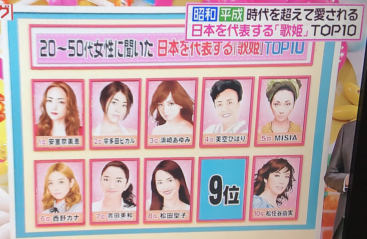 10代~60代に聞いた「歌姫と聞いて思いつく歌手は?」 世代別TOP10 (王様のブランチ)