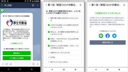 3月31日、突然送られてきた「LINE」のメッセージに戸惑いを覚えた人は少なくないだろう。「第1回『新型コロナ対策のための全国調査』」と題されたそのアンケート調査のメッセージは、全国すべてのLINEユーザーに送信された。