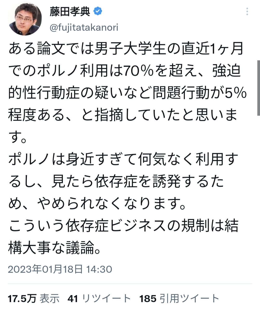 ポルノ規制は無理やけど違法ダウンロード取締りを厳しくしたら同じくらい効果があると思う