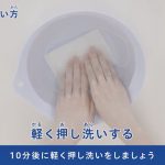1.まず桶に衣料用洗剤を入れる。商品に記載の使用料を確認が必要だが、水2リットルに対して0.7gほどが目安。洗剤を入れたら、スプーンなどで水に溶かす。その中に、マスクを入れて10分放置後、軽く押し洗いをする。軽く押し洗いするのは、「繊維を痛める」から。もみ洗いはしないこと。洗い終わったら、桶に入った水を流し、桶に水道水をため、マスクの洗剤をすすぐ。