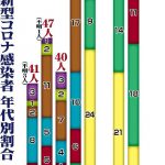 66人の年代別の内訳では60歳未満が56人を占め、中でも20~40代が計44人に上っている。29日判明分では、68人中20代が19人、30代が24人。31日は78人中20代が15人、30代が21人と、若年層の増加傾向が目立っている。