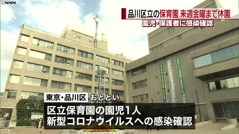 東京都品川区の保育園に通う園児やその保護者に新型コロナウイルスの感染が確認され、通園していた保育園が臨時休園となっています。