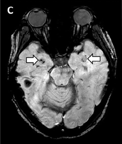 同時に、頭部のCTスキャン検査を実施したところ、脳の中心部分にあって、視覚や聴覚、運動などをつかさどる「視床」に損傷が見つかり、壊死が起きているのが判明。さらに脳のMRI検査の結果、側頭葉の血管が破裂して出血しているのも見つかった。