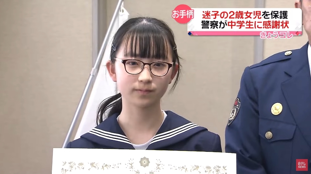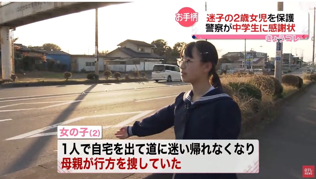 お手柄!中学生 迷子の2歳児を保護して交番へ…警察が感謝状