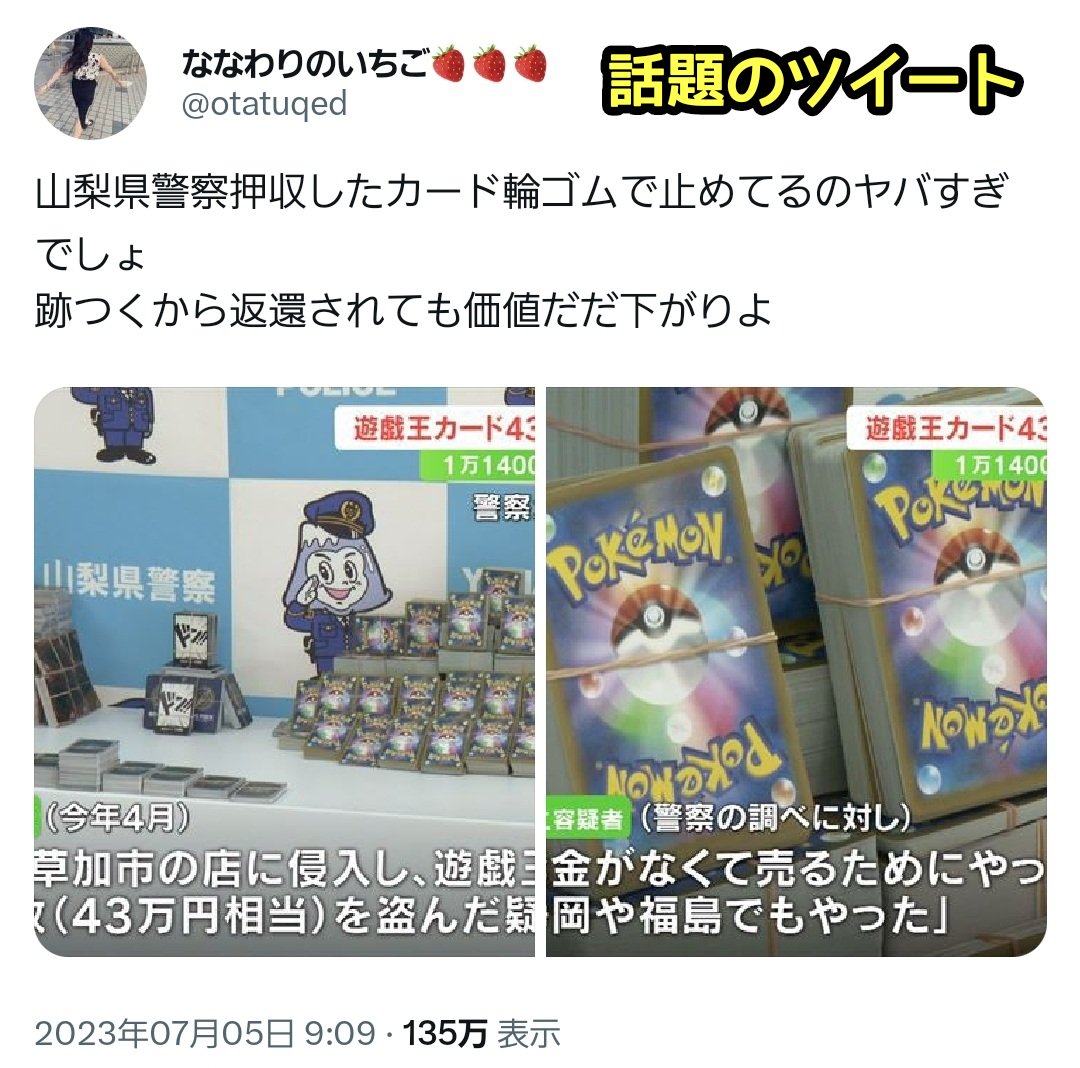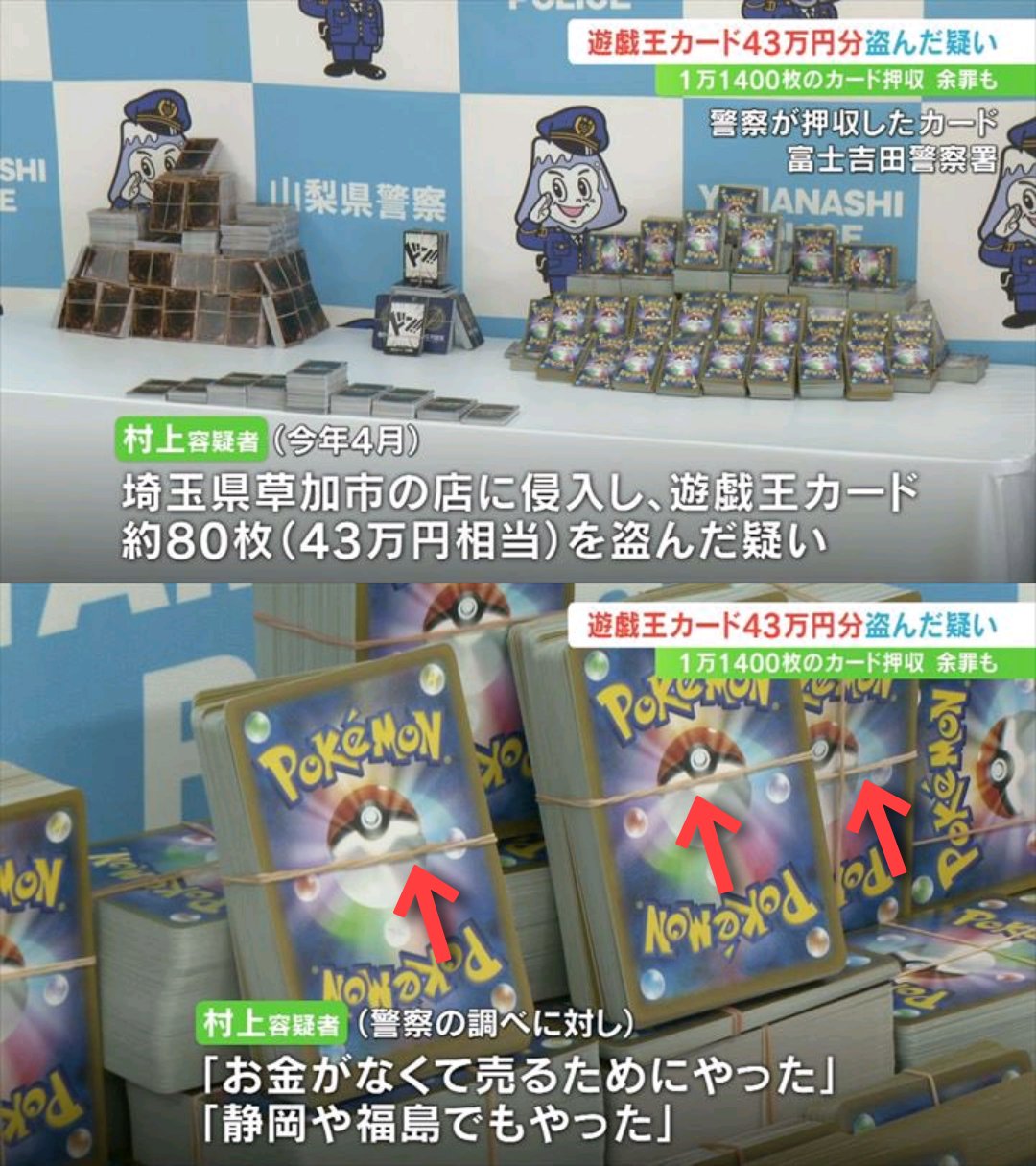 遊戯王やポケモンなどのカードが大量に盗まれるも、山梨県警が検挙に成功