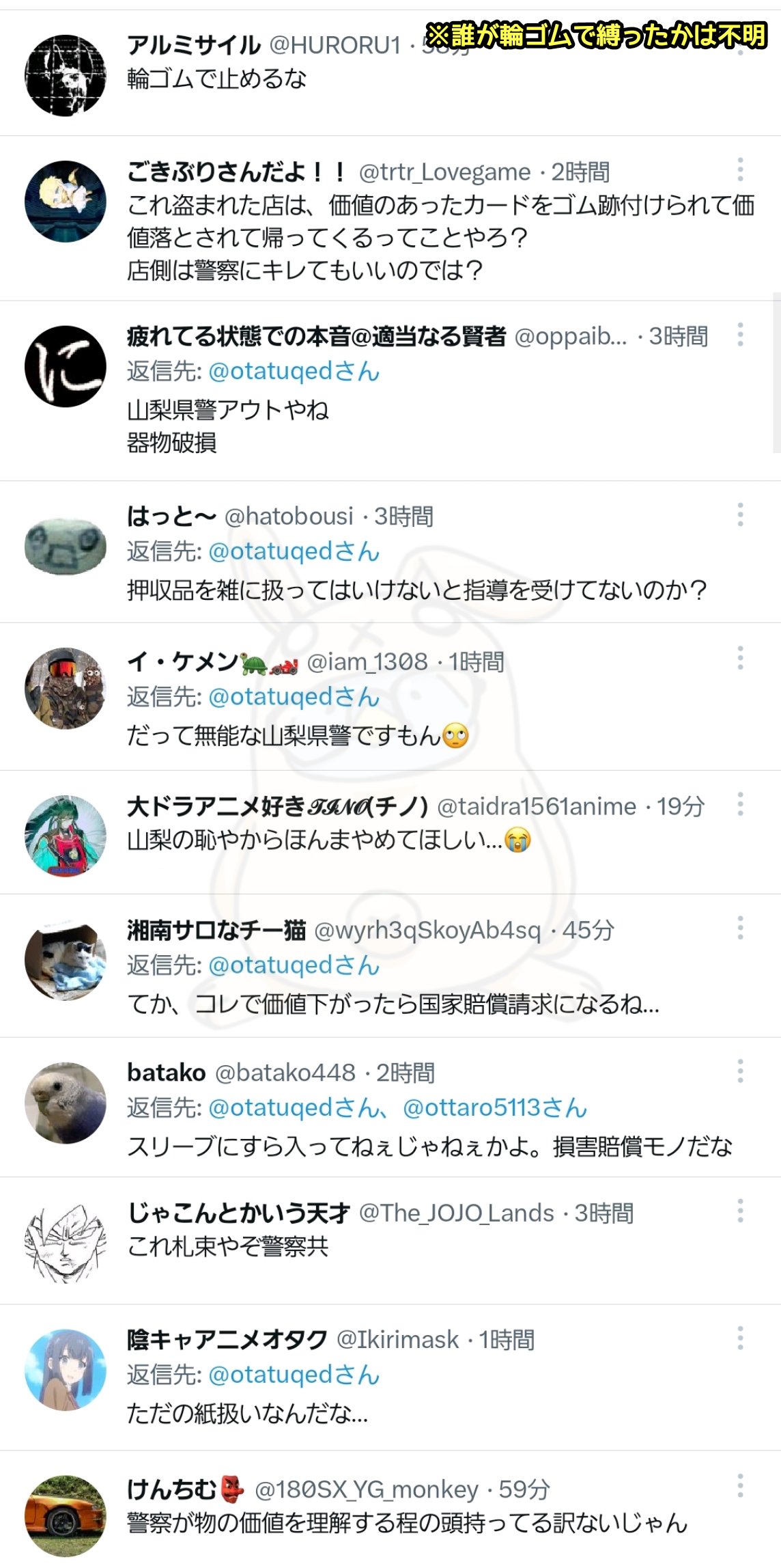 警察に押収されたカードが“輪ゴム”で縛られていることにカードゲーマーらが激怒