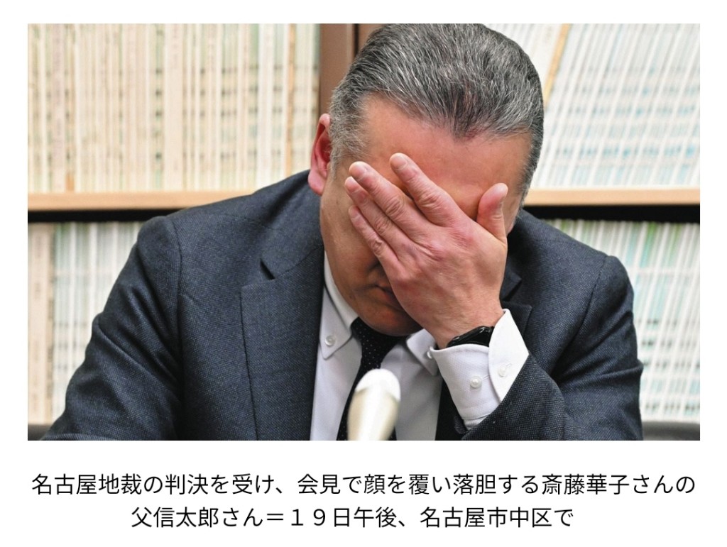 「裁判所も娘の死に向き合ってくれないのか」。学校側の過失を認めなかった名古屋地裁判決に、名古屋市内で記者会見した父親の斎藤信太郎さん(52)は時折言葉を詰まらせながら、無念の思いを語った。