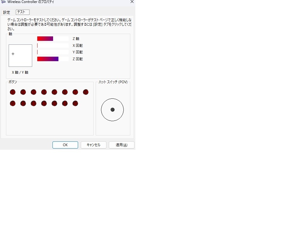 リセットとwindows内の設定で調整やったけど無理だった 瞬間的に一番左まで行くからデッドゾーン広げるのは無理