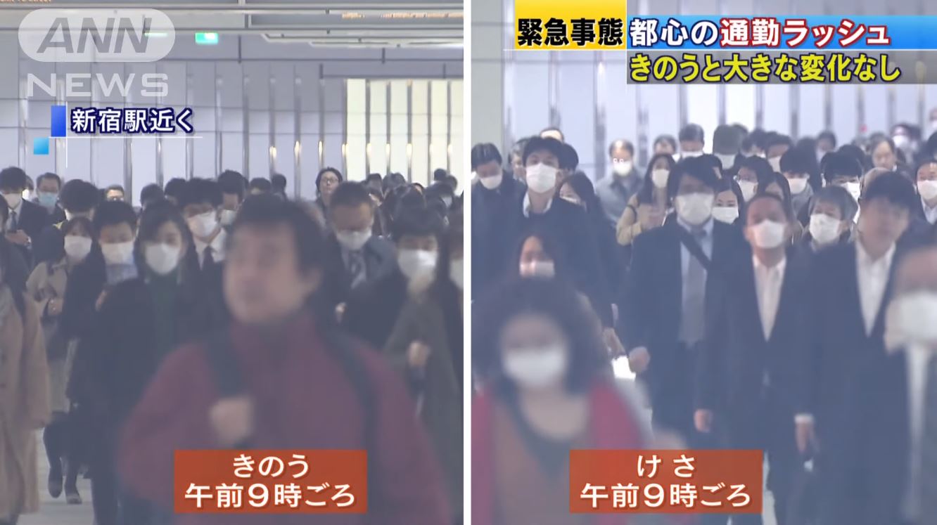 【無能】安倍晋三「緊急事態宣言で人の流れを減らすぞ!」→きょうも朝の駅は激混み