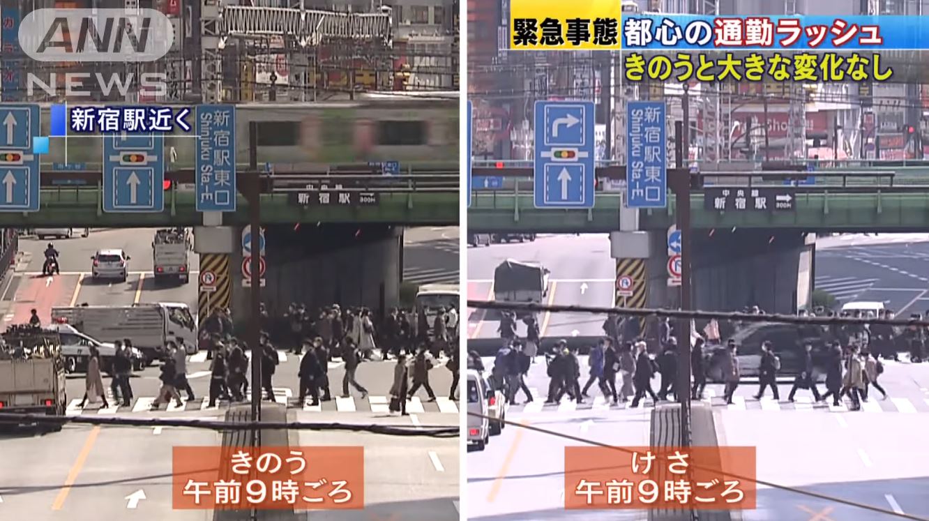 - 確かに朝夕混雑は変わらない緊急事態だな