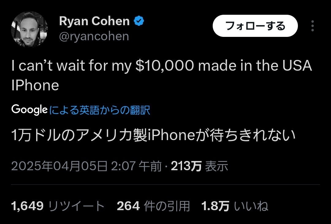 箱はなんぼになるんかな?iPhone、米国で33万円に値上げも トランプ関税で試算