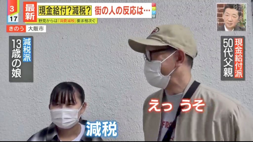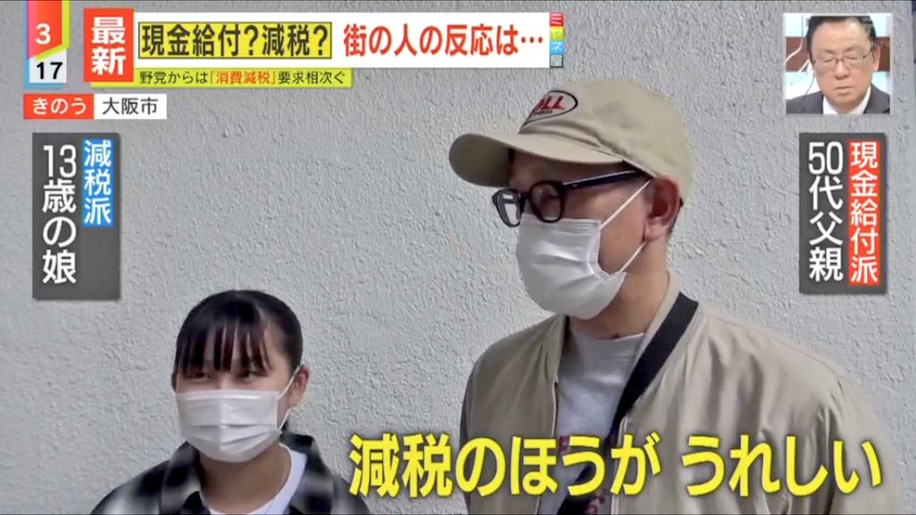 だって子供は直接給付されないから小遣いの使える量増える消費税減税の方が嬉しいやろ