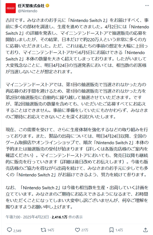 皆!俺のSwitch2が当たるように祈ってくれ!!!👏👏👏👏👏