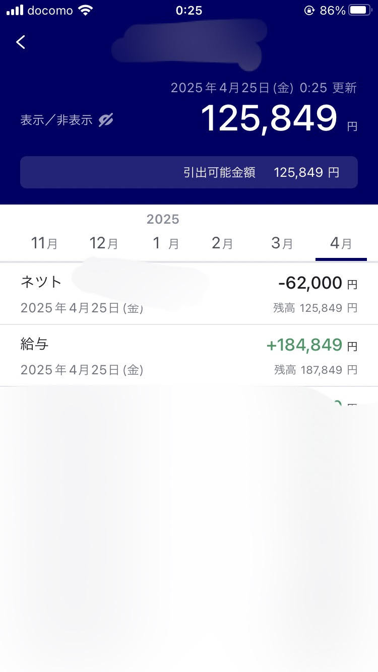 【画像】俺(大卒5年目東京勤務)の今月の給料、振り込まれる
