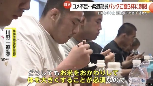 【画像】柔道部員さん悲痛「コメ不足でごはんのおかわりができなくなり、腹減って困ってます…」