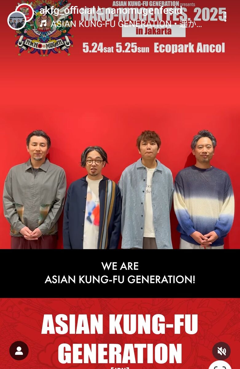 アジカンの公式サイトで「ASIAN KUNG-FU GENERATION presents NANO-MUGEN FES. 2025 in JAKARTA 開催中止のお知らせ」と題して報告。「このたび、2025年5月24日(土)・25(日)に開催を予定しておりました『NANO-MUGEN FES. 2025 in JAKARTA』につきまして、開催に向けインドネシア現地主催会社および関係各社と協議を重ねながら準備を進めてまいりましたが、ジャカルタにおける現在の様々な課題について慎重に検討を重ねた結果、ファンの皆様およびアーティストの皆様にお約束すべき環境を整えることが困難であるとの結論に至りました」と伝え、「誠に残念ではございますが、『NANO-MUGEN FES. 2025 in JAKARTA』は中止とさせていただきます」と発表した。