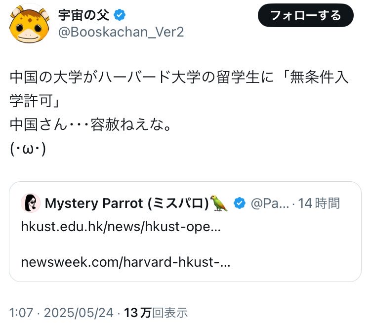 https://www.newsweek.com/harvard-hkust-china-college-international-students-offer-2076257- 2 : 2025/05/24(土) 21:31:42.36 ID:/en/o4Cn0