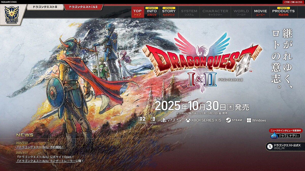 2025/06/06 14:00『ドラクエ』シリーズといえば日本を代表するゲームのひとつだが、その原点となる『ドラゴンクエストI&II』(以下『ドラクエ1&2』と表記)のリメイク版が2025年10月30日に発売されると明らかになった。
