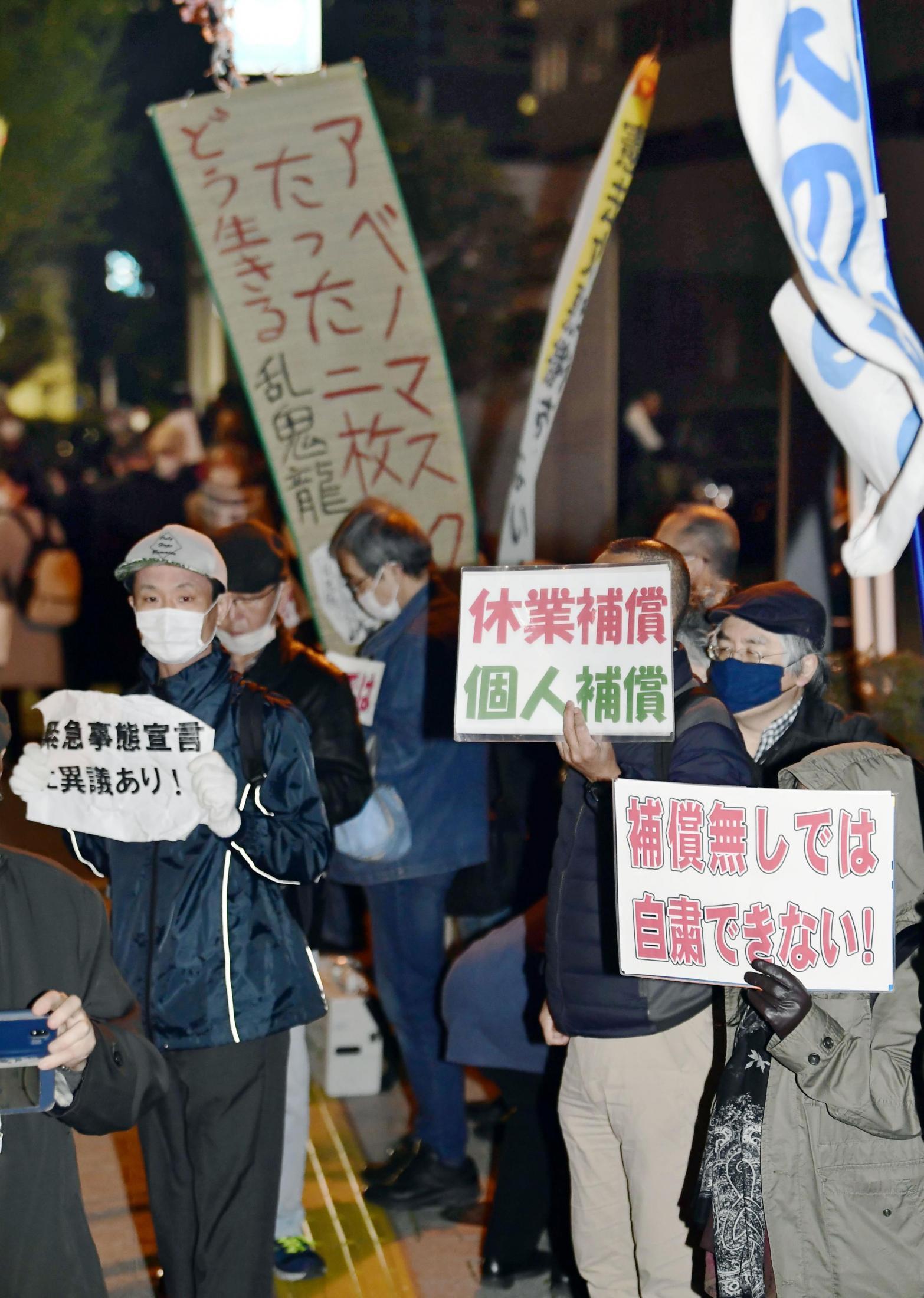 安倍晋三首相が新型コロナウイルス特措法に基づき発令した緊急事態宣言には問題が多い上、憲法改正への波及に期待する発言をしたとして、市民団体が9日、東京・永田町の首相官邸前で抗議集会を開き「緊急事態宣言に異議あり」「改憲に利用するな」と訴えた。