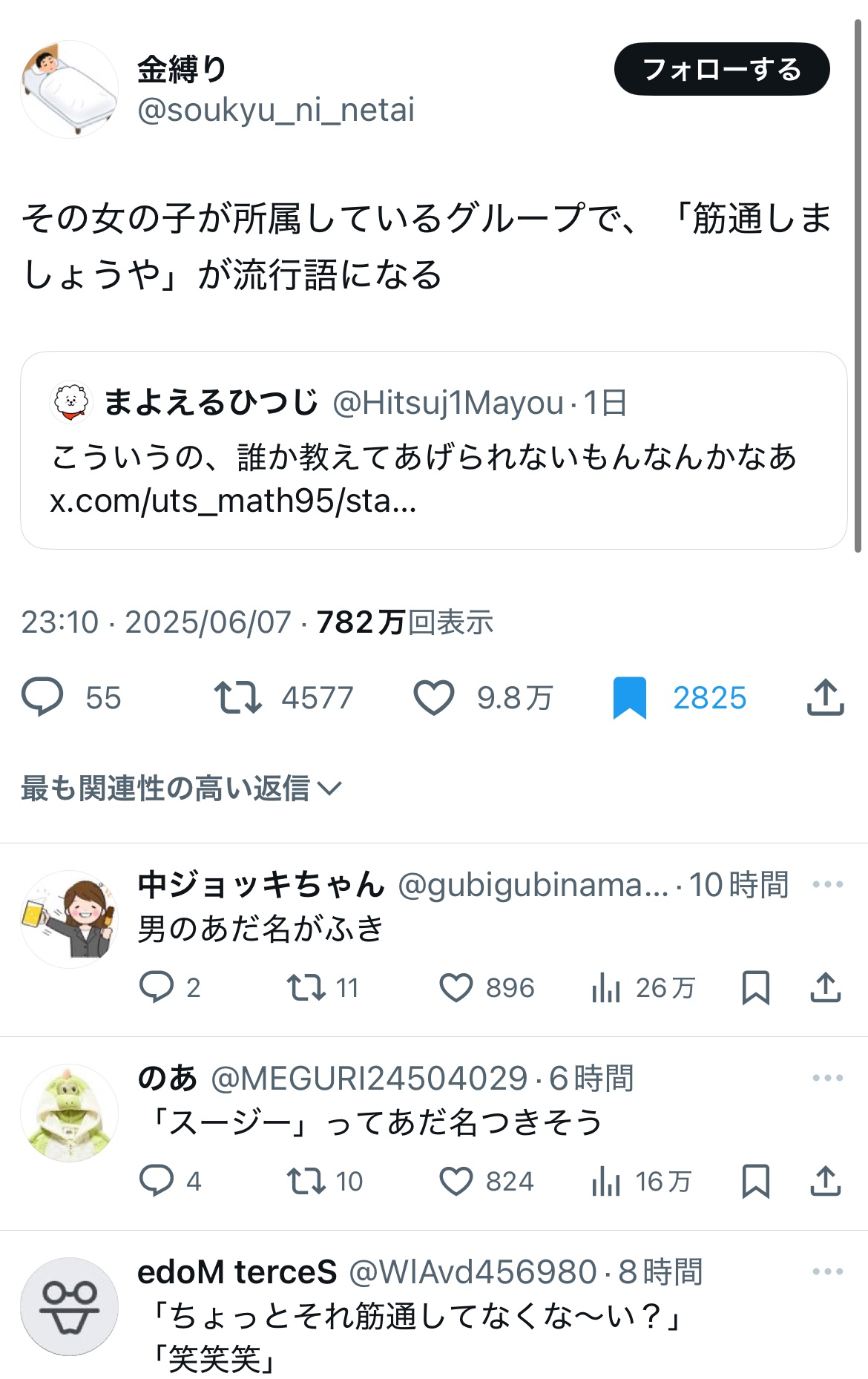 女子グループ内で筋通しましょうや…が流行語になるは草