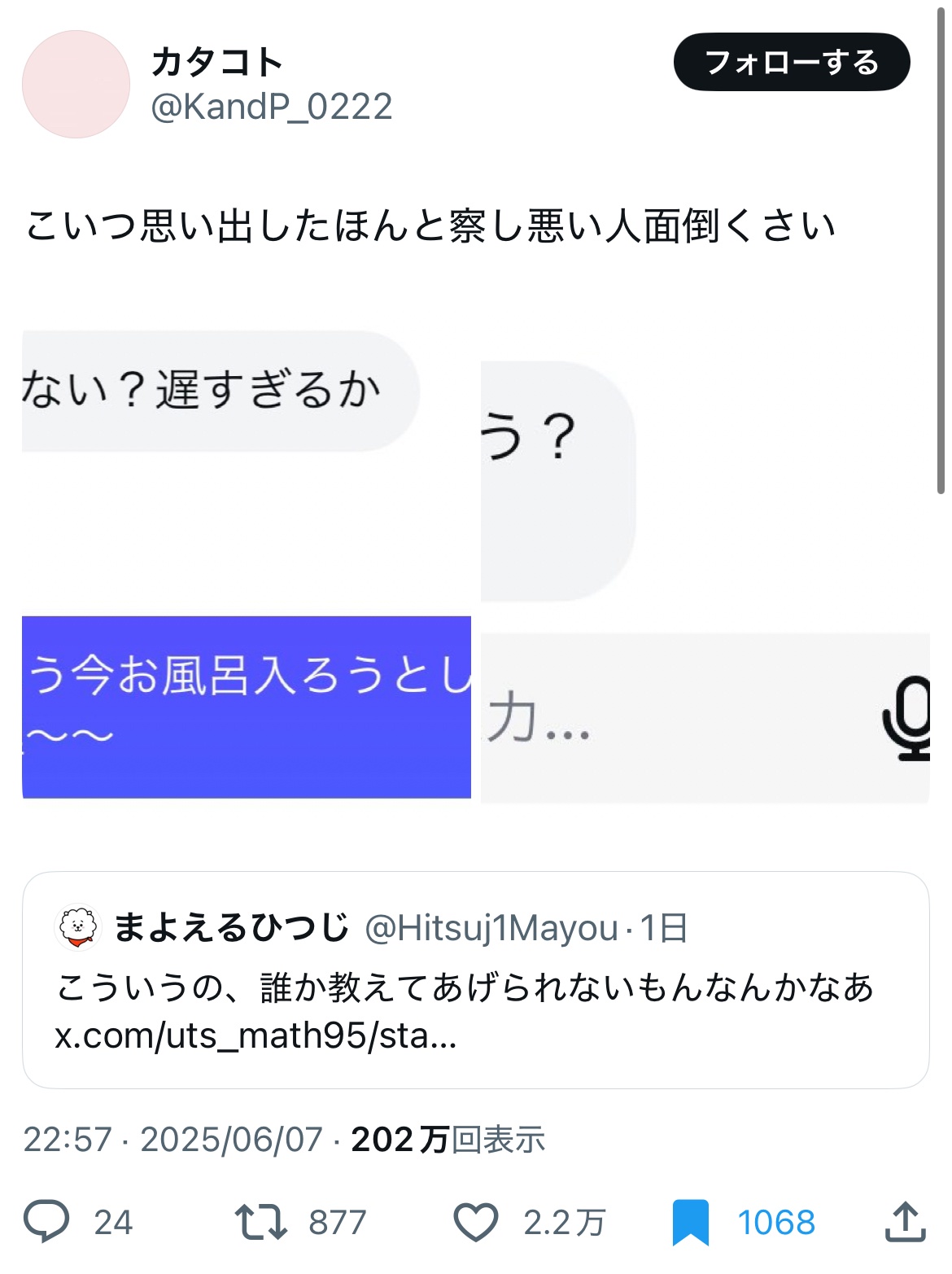 返事がない時点で察するべきなのに逆ギレして追撃しててキモい