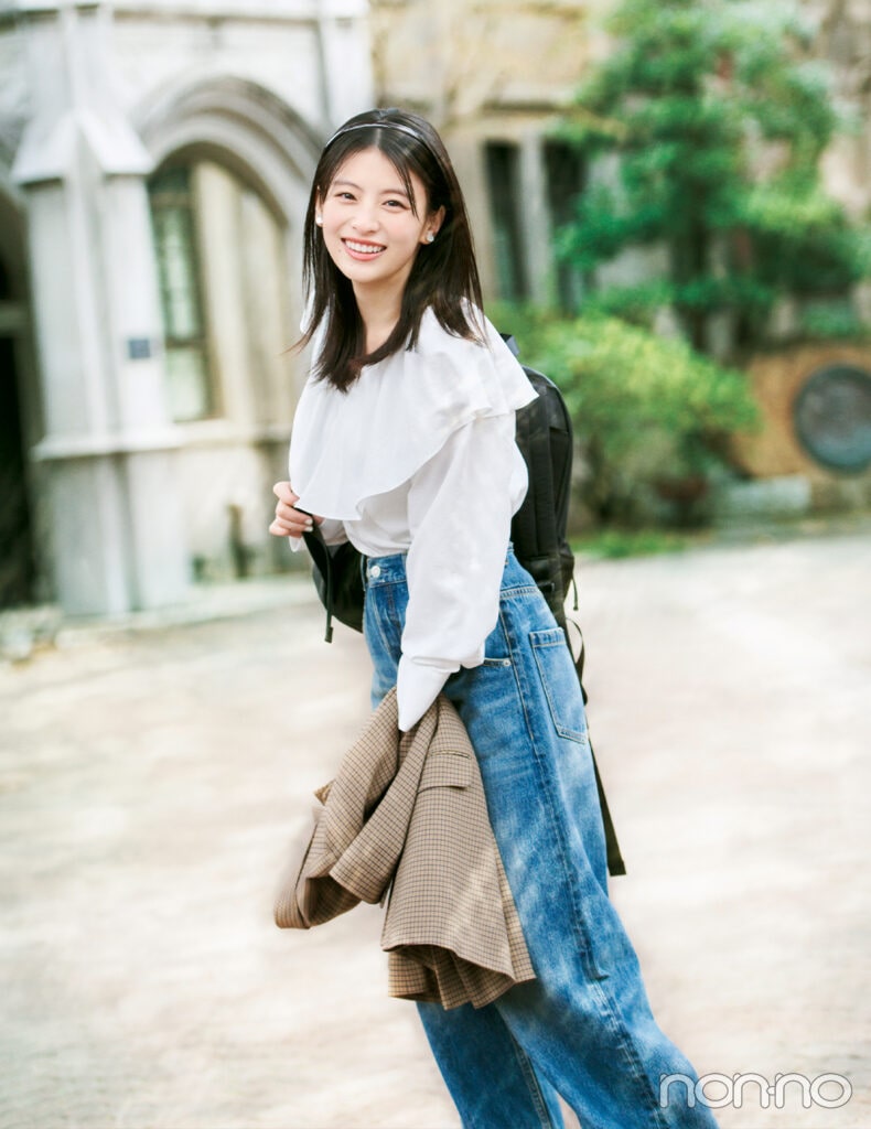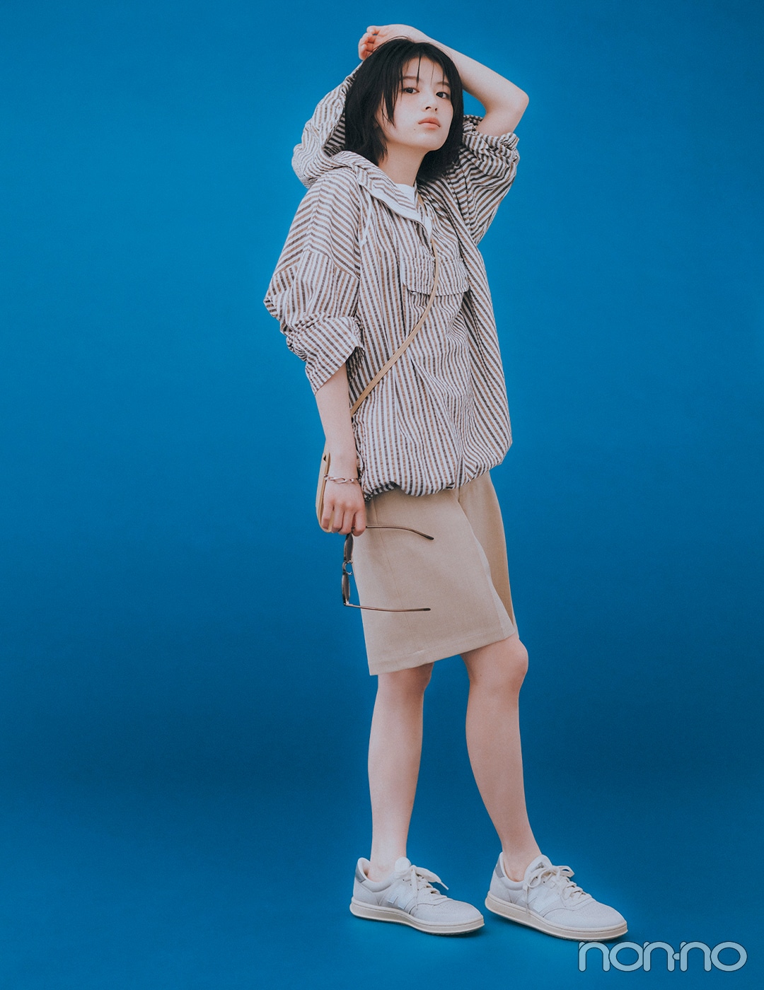 【non-no】出口夏希 ラフさが絵になるアノラック。サンドベージュで“オトナのチル”<大学生の毎日コーデ>
