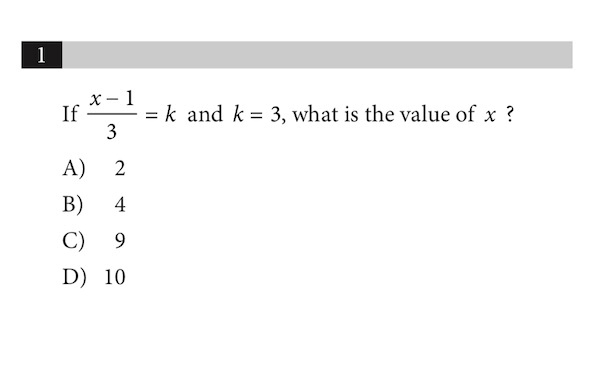 SATの過去問(アメリカの大学進学適性試験、↓の内容は日本の中3の教科書例題レベル)